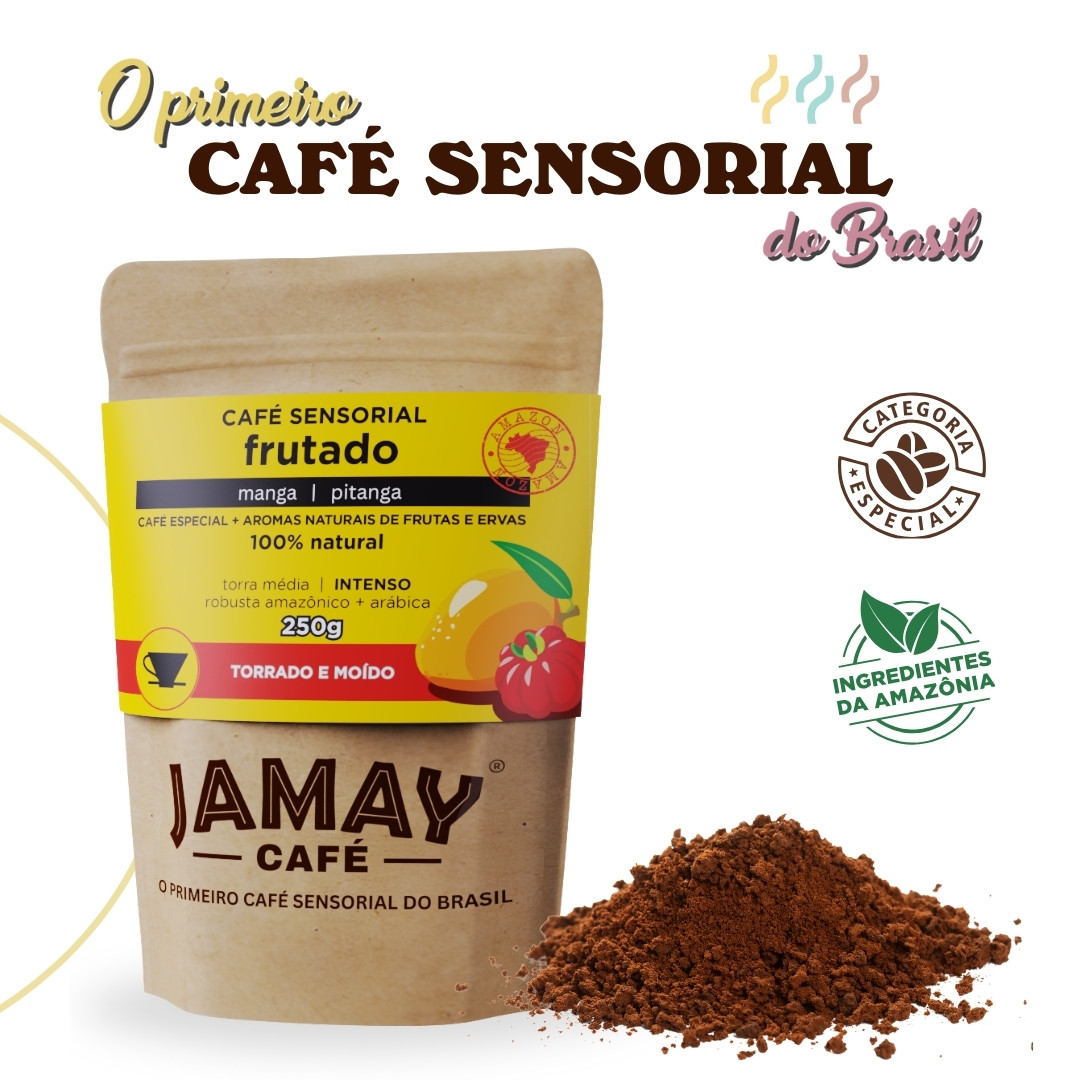 O segredo do nosso blend reside na cuidadosa combinação dos cafés RobustaAmazônico (pontuação de 81 pontos, originário das matas de Rondônia) e Arábica (pontuação de 84 pontos, cultivado em São Carlos-SP), em torra média. Essa é a base que dita o sabor distinto deste café. Depois de extensas pesquisas sobre as combinações sensoriais mais adequadas, adicionamos os sabores vibrantes da manga, da pitanga e do açaí, impulsionamos o sabor com ervas aromáticas, criando assim um casamento perfeito entre as frutas brasileiras e resultando no Jamay® Frutado.