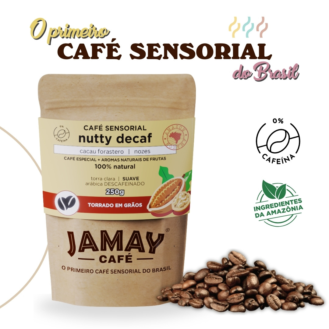 E o que fizemos com isso? Criamos um produto que, mesmo sendo bem descafeinado, oferece sabor e prazer. Nosso Jamay® Nutty Decaf realiza isso, com notas de cacau forastero e nozes, proporcionando uma sensação de suavidade e leveza para momentos de descanso e relaxamento.